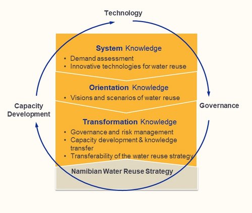 The international research project aims to support the development of a Multi-Level Water Reuse Strategy for Namibia. The project integrates innovative technologies, adaptive multi-level governance, and capacity development approaches at various levels. The ultimate goal is to enhance Namibia’s water security by co-developing the necessary framework for the nationwide implementation of water reuse.