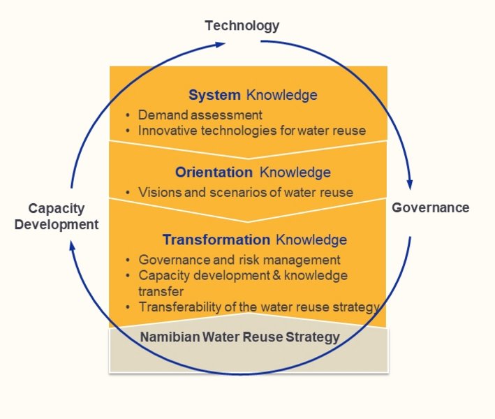 The international research project aims to support the development of a Multi-Level Water Reuse Strategy for Namibia. The project integrates innovative technologies, adaptive multi-level governance, and capacity development approaches at various levels. The ultimate goal is to enhance Namibia’s water security by co-developing the necessary framework for the nationwide implementation of water reuse.